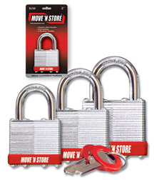 In a standard pin/tumbler design padlock, which most are, there are a set number of varying length, spring-loaded pin sets--usually 4 or 5--arranged in a row in the tumbler's keyway. When the key is inserted, the "cuts" in the key, push each pin upward a corresponding distance to its length to align along the edge of the tumbler, called the shear line. This allows the tumbler to turn and open the lock.